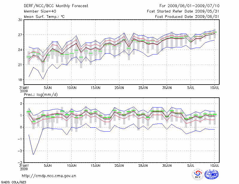 酉 阳 (LAT:28.83 LON:108.77) 2009-06-01        预测