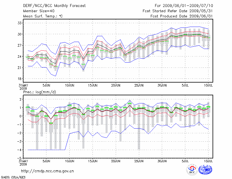 东 台 (LAT:32.87 LON:120.32) 2009-06-01        预测