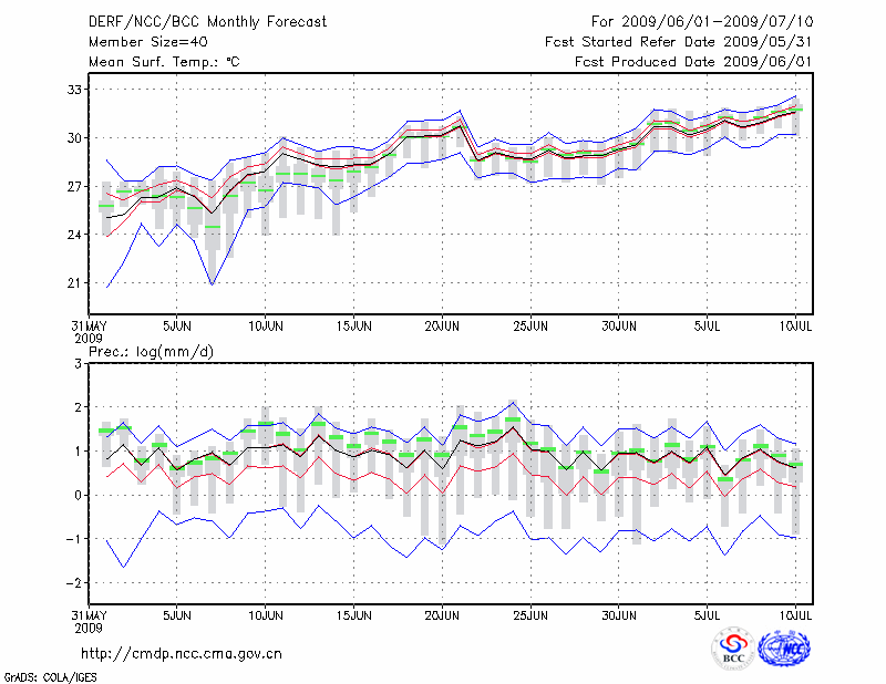 南 昌 (LAT:28.60 LON:115.92) 2009-06-01        预测