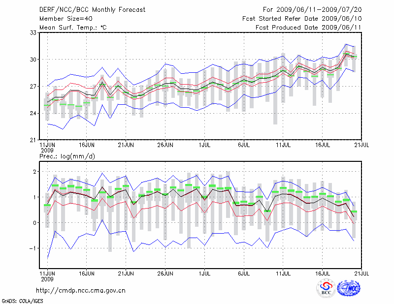 屯 溪 (LAT:29.71 LON:118.28) 2009-06-11        预测