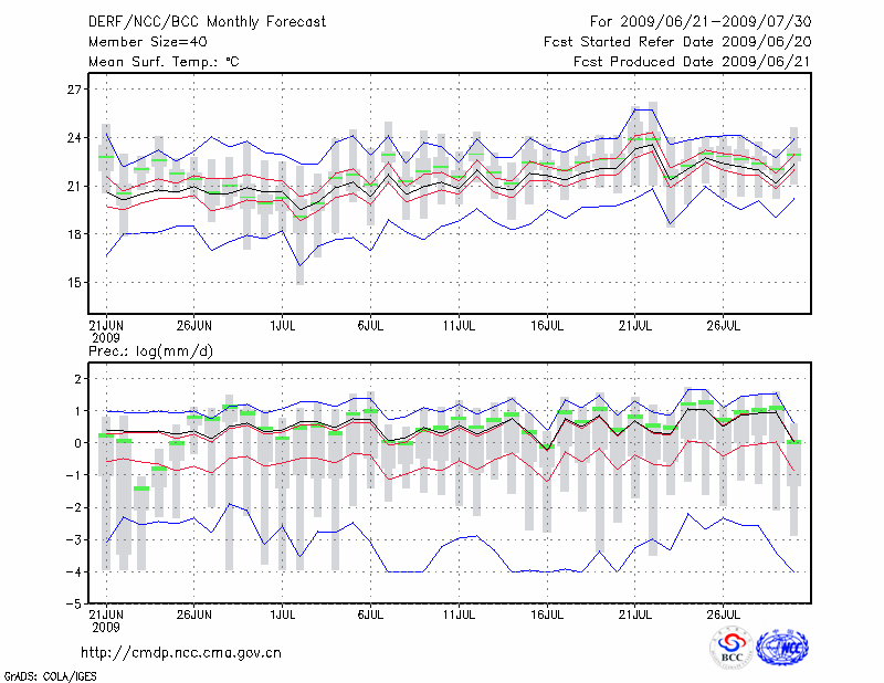 西 峰 镇 (LAT:35.73 LON:107.63) 2009-06-21        预测