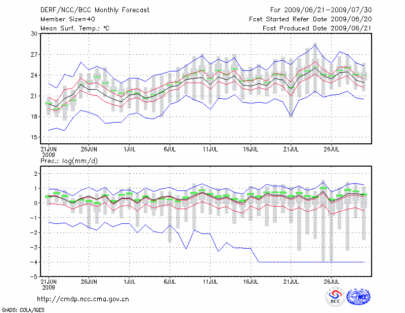牡 丹 江 (LAT:44.57 LON:129.60) 2009-06-21        预测