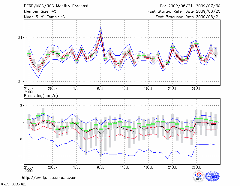 临 沧 (LAT:23.95 LON:100.22) 2009-06-21        预测