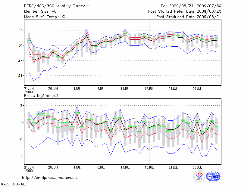 岳 阳 (LAT:29.38 LON:113.08) 2009-06-21        预测
