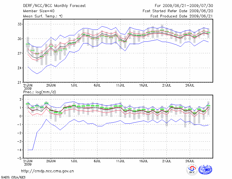 杭 州 (LAT:30.23 LON:120.17) 2009-06-21        预测