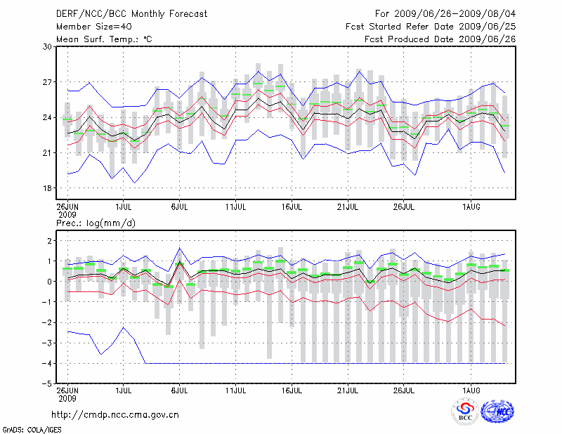 哈 尔 滨 (LAT:45.75 LON:126.77) 2009-06-26        预测