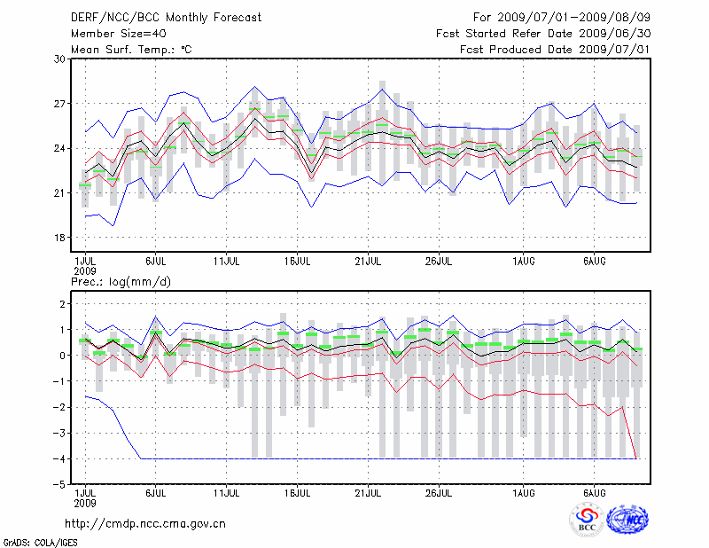 哈 尔 滨 (LAT:45.75 LON:126.77) 2009-07-01        预测