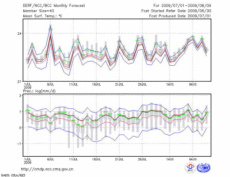 临 沧 (LAT:23.95 LON:100.22) 2009-07-01        预测