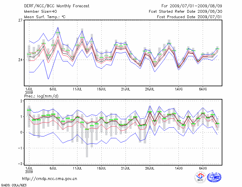 蒙 自 (LAT:23.38 LON:103.38) 2009-07-01        预测
