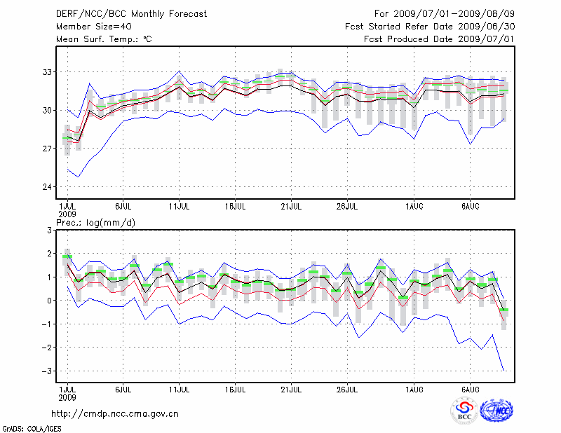 岳 阳 (LAT:29.38 LON:113.08) 2009-07-01        预测