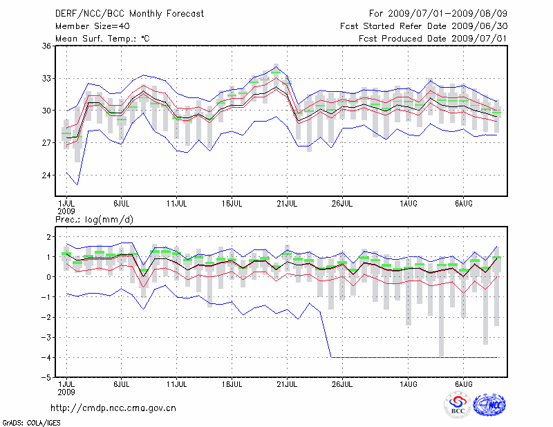 蚌 埠 (LAT:32.95 LON:117.37) 2009-07-01        预测