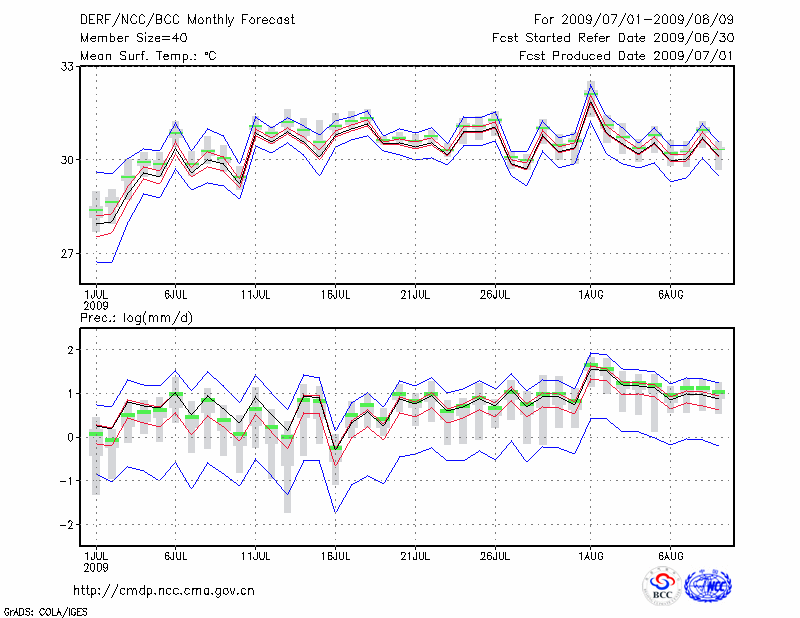 福 州 (LAT:26.08 LON:119.28) 2009-07-01        预测