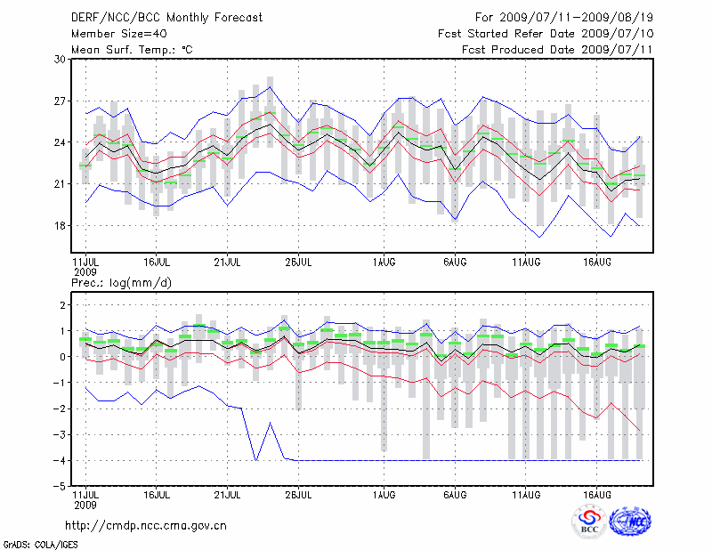 牡 丹 江 (LAT:44.57 LON:129.60) 2009-07-11        预测