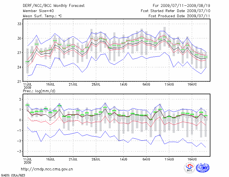 西 安 (LAT:34.30 LON:108.93) 2009-07-11        预测