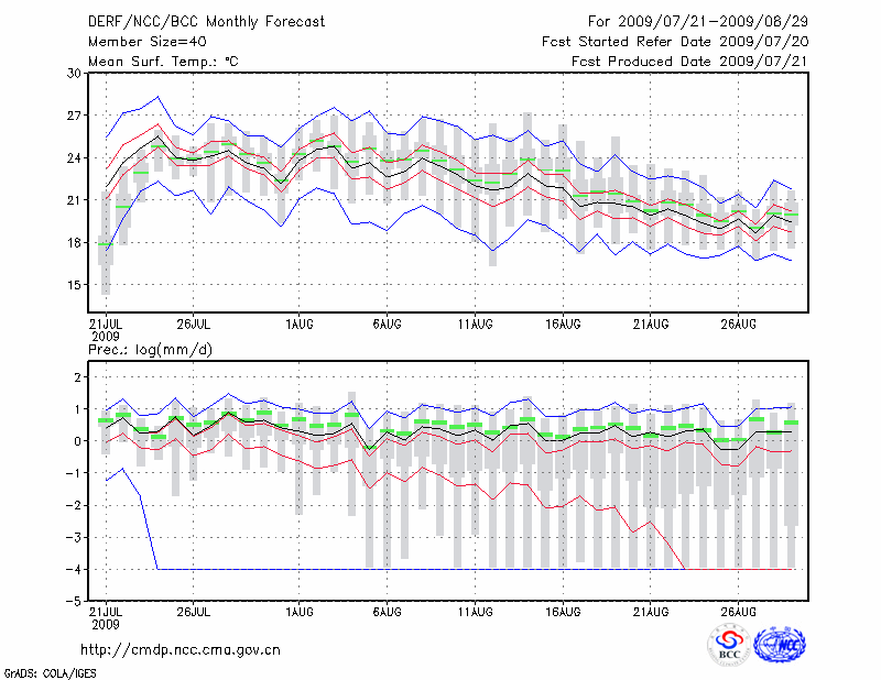 牡 丹 江 (LAT:44.57 LON:129.60) 2009-07-21        预测