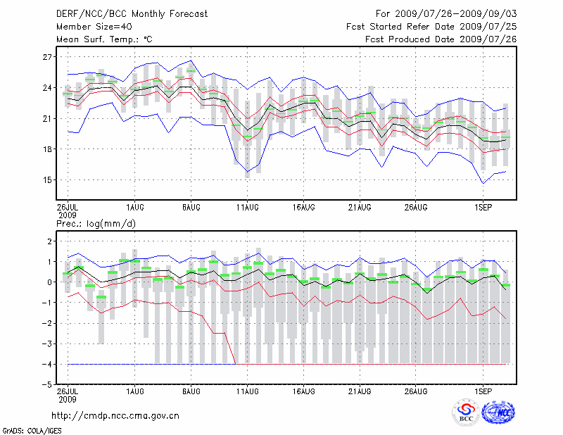 哈 尔 滨 (LAT:45.75 LON:126.77) 2009-07-26        预测