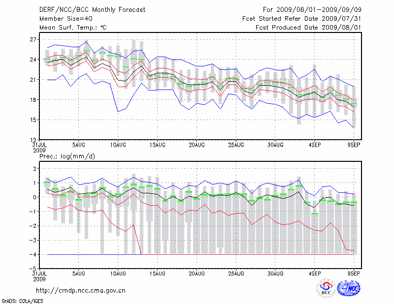 哈 尔 滨 (LAT:45.75 LON:126.77) 2009-08-01        预测