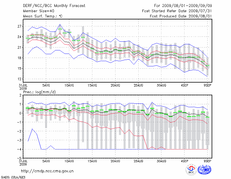 鸡 西 (LAT:45.28 LON:130.95) 2009-08-01        预测