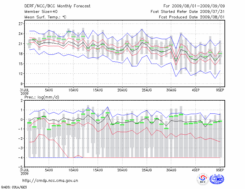 锡林浩特 (LAT:43.95 LON:116.07) 2009-08-01        预测