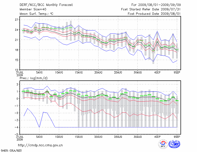 通 化 (LAT:41.68 LON:125.90) 2009-08-01        预测