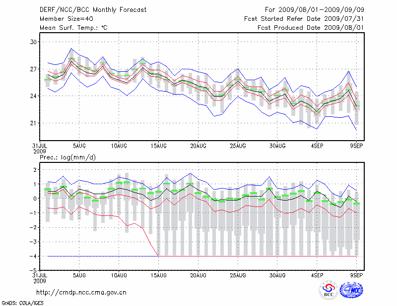 营 口 (LAT:40.67 LON:122.20) 2009-08-01        预测