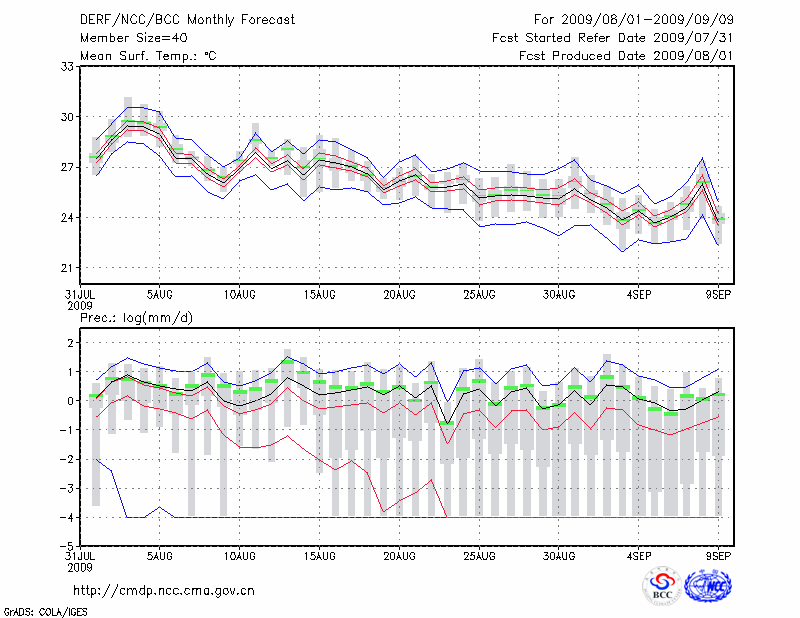 潍 坊 (LAT:36.70 LON:119.08) 2009-08-01        预测