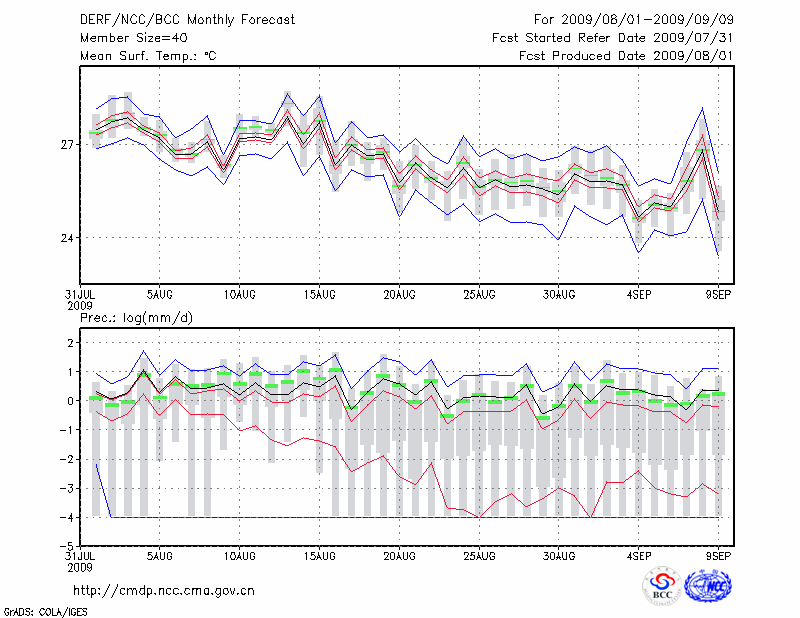 青 岛 (LAT:36.07 LON:120.33) 2009-08-01        预测