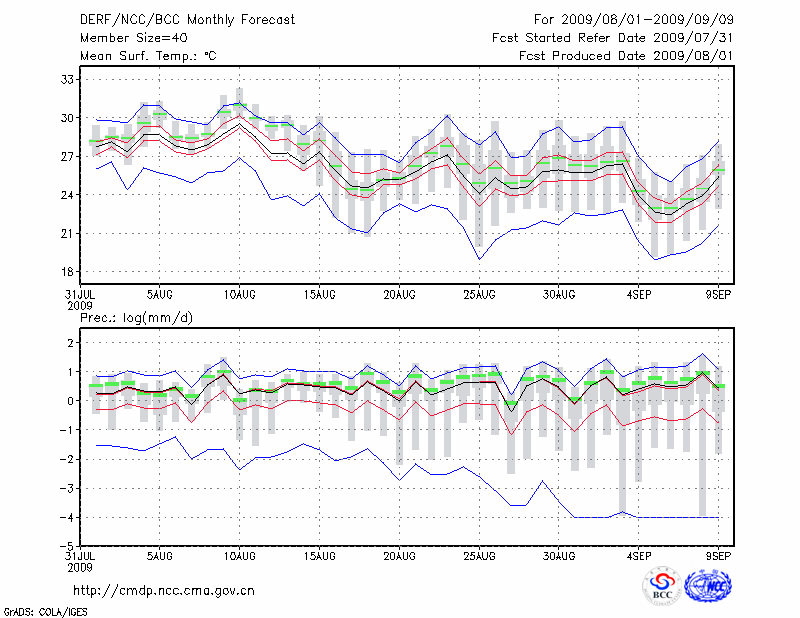西 安 (LAT:34.30 LON:108.93) 2009-08-01        预测