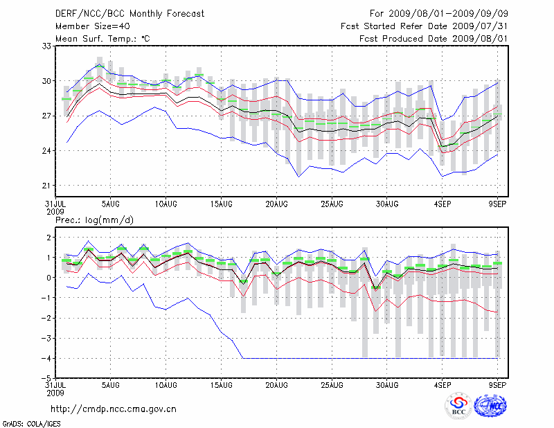 信 阳 (LAT:32.13 LON:114.05) 2009-08-01        预测
