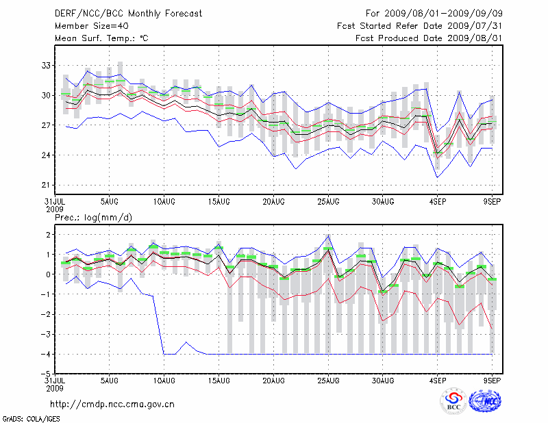蚌 埠 (LAT:32.95 LON:117.37) 2009-08-01        预测