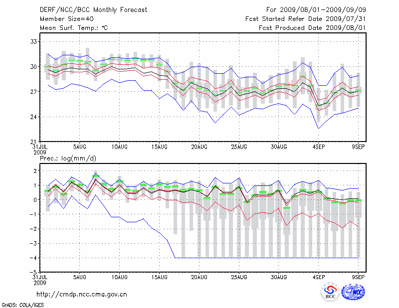 南 京 (LAT:32.00 LON:118.80) 2009-08-01        预测