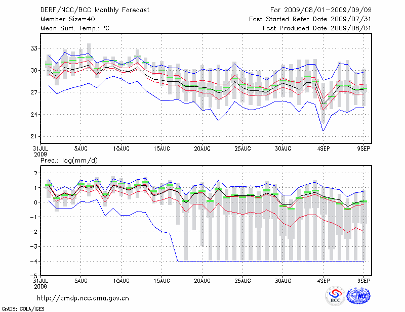 合 肥 (LAT:31.87 LON:117.23) 2009-08-01        预测