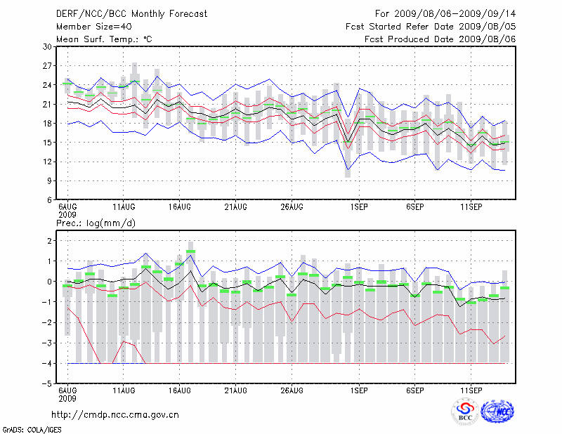 锡林浩特 (LAT:43.95 LON:116.07) 2009-08-06        预测