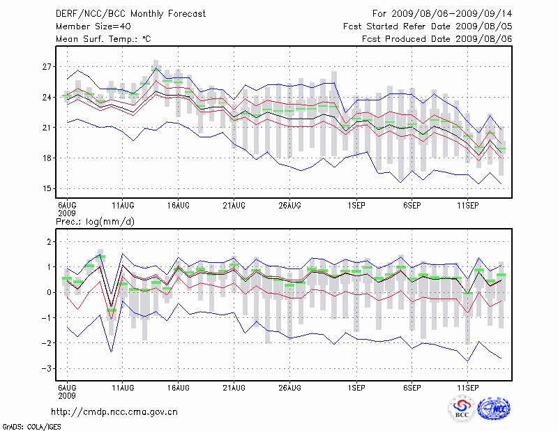 天 水 (LAT:34.58 LON:105.75) 2009-08-06        预测