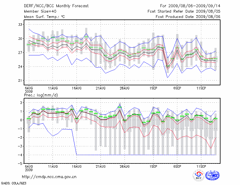 蚌 埠 (LAT:32.95 LON:117.37) 2009-08-06        预测