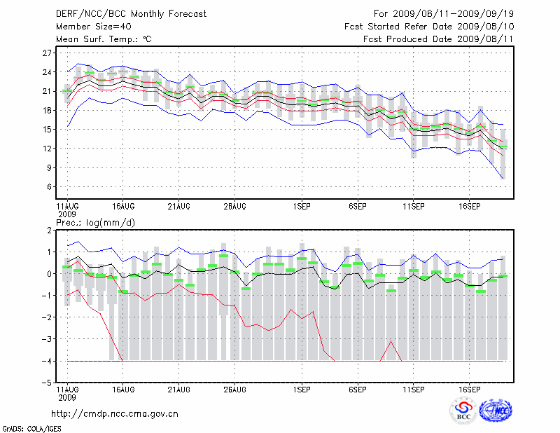 哈 尔 滨 (LAT:45.75 LON:126.77) 2009-08-11        预测