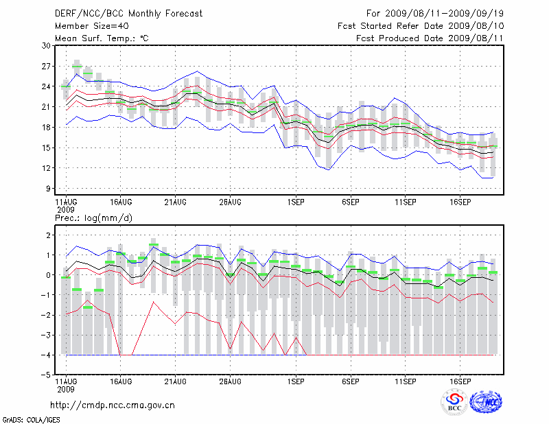 呼和浩特 (LAT:40.82 LON:111.68) 2009-08-11        预测