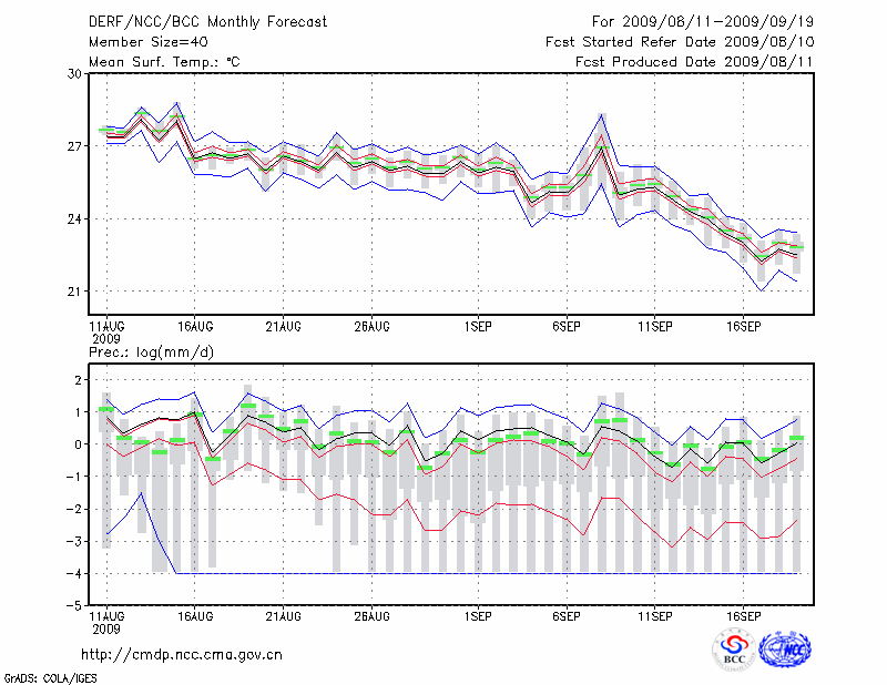 青 岛 (LAT:36.07 LON:120.33) 2009-08-11        预测