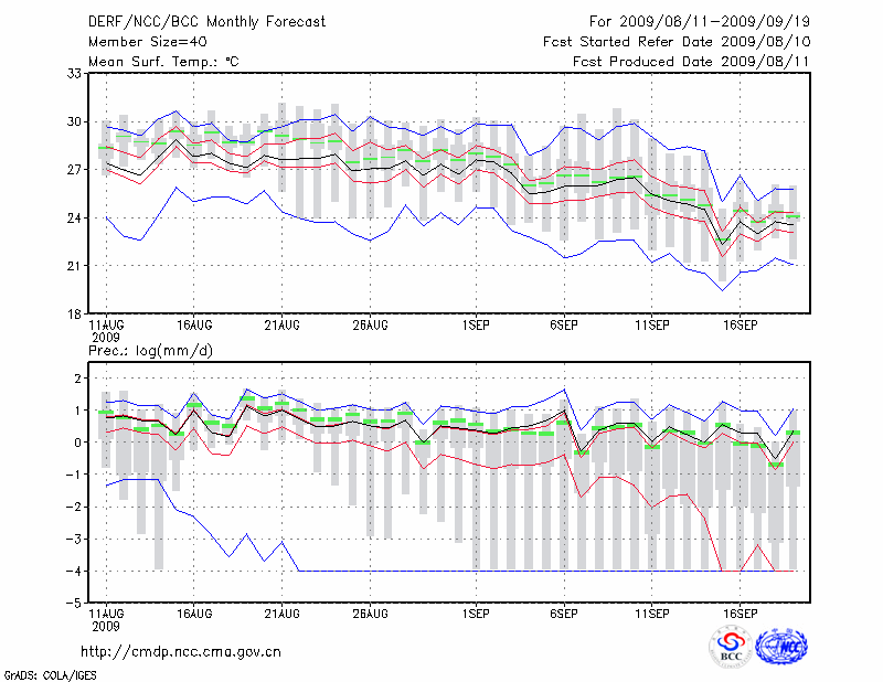 钟 祥 (LAT:31.17 LON:112.57) 2009-08-11        预测