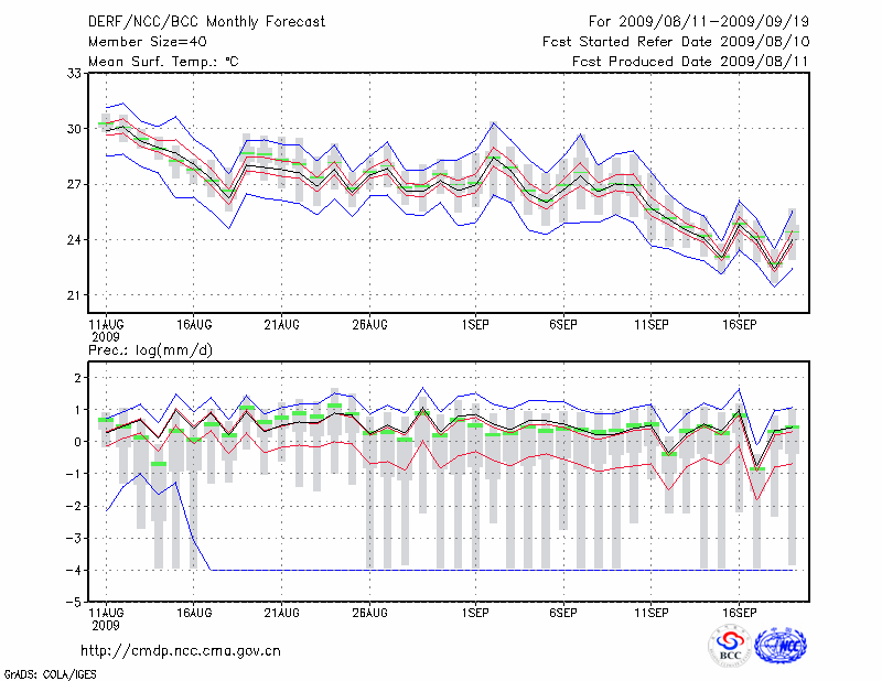 东 台 (LAT:32.87 LON:120.32) 2009-08-11        预测