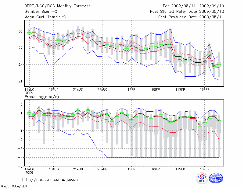 屯 溪 (LAT:29.71 LON:118.28) 2009-08-11        预测