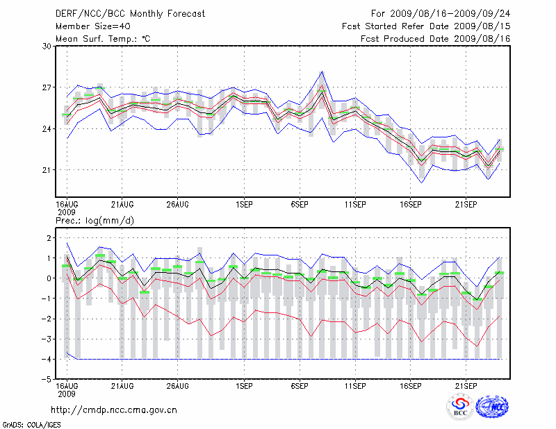 青 岛 (LAT:36.07 LON:120.33) 2009-08-16        预测