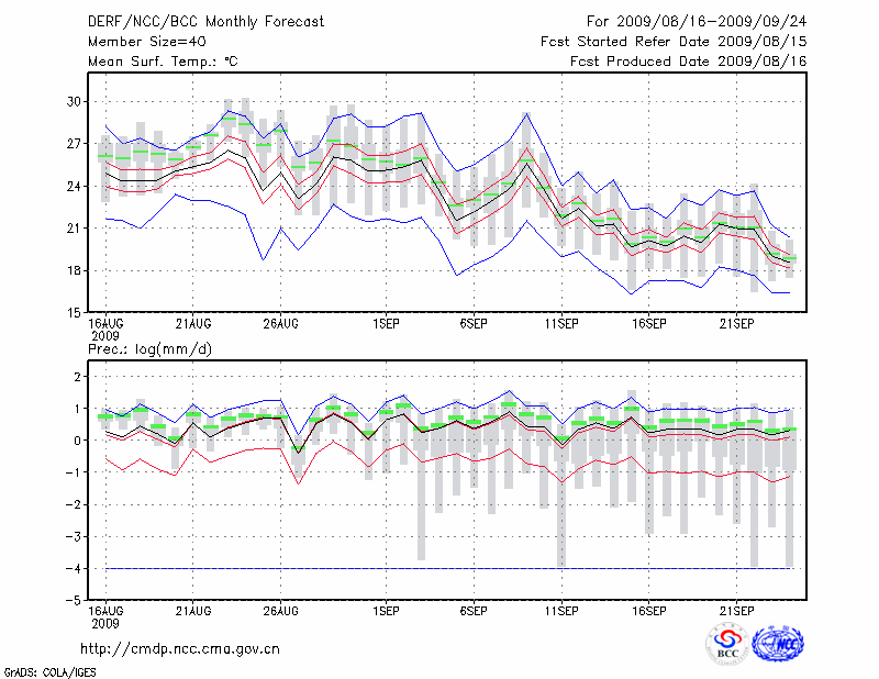 西 安 (LAT:34.30 LON:108.93) 2009-08-16        预测