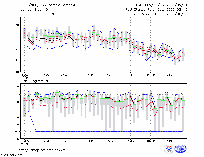 东 台 (LAT:32.87 LON:120.32) 2009-08-16        预测