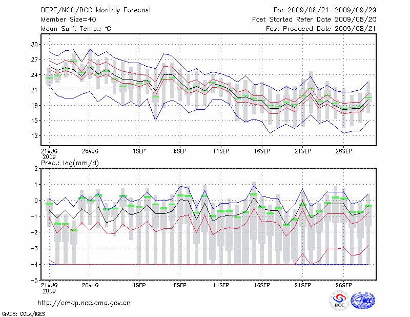 乌 苏 (LAT:44.43 LON:84.66) 2009-08-21        预测