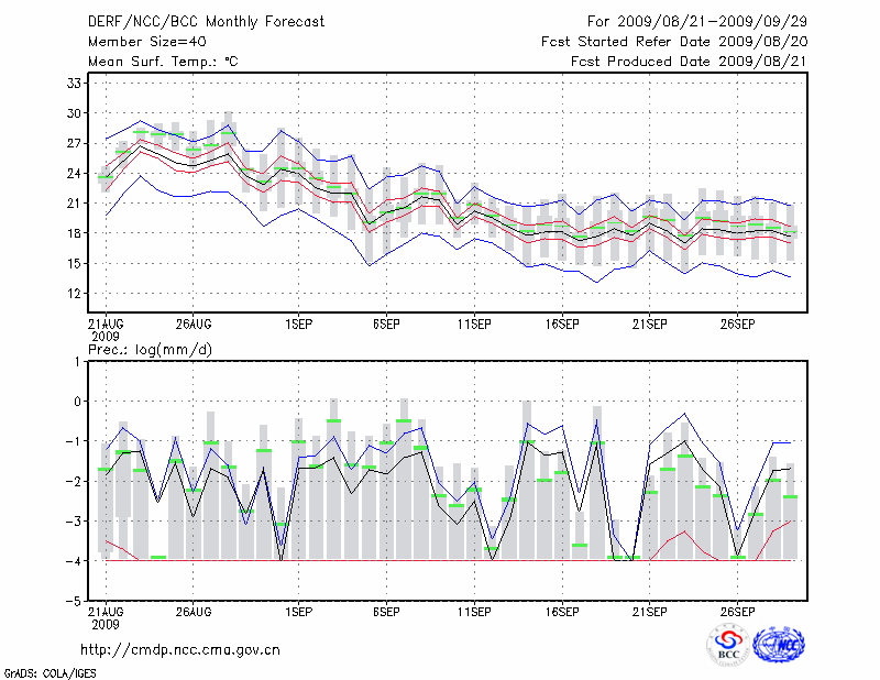 哈 密 (LAT:42.82 LON:93.52) 2009-08-21        预测