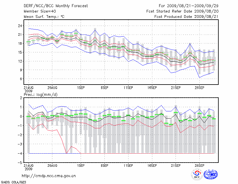 牡 丹 江 (LAT:44.57 LON:129.60) 2009-08-21        预测