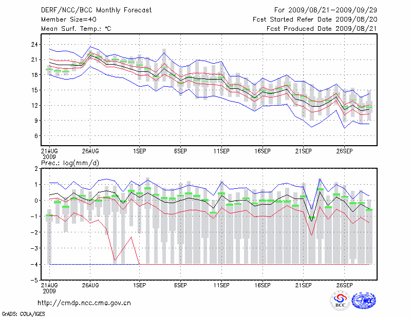 延 吉 (LAT:42.88 LON:129.47) 2009-08-21        预测