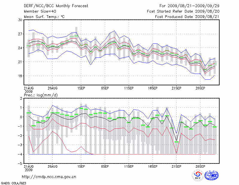 天 津 (LAT:39.10 LON:117.17) 2009-08-21        预测