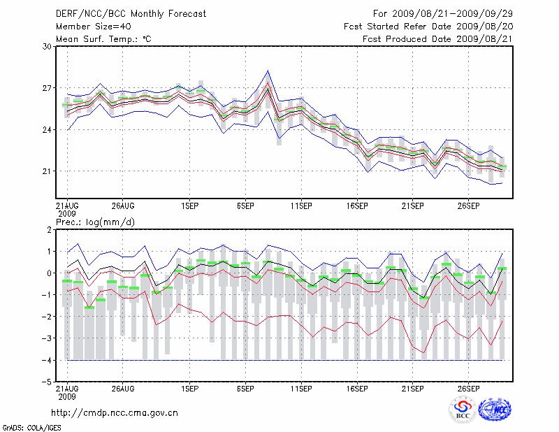 青 岛 (LAT:36.07 LON:120.33) 2009-08-21        预测